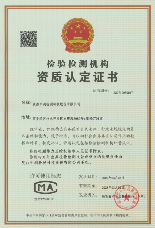 监督电话:029-88815568 陕西中测检测科技股份有限公司